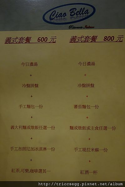 Ciao Bella在義大利老闆掌廚及台灣老闆娘賢內助之下,提供了適合台灣人口味又具特色的義式料理,可惜套餐在價位方面偏高,想嘗鮮又考慮荷包的朋友只能以單點的方式酌量點餐。 用餐環境則具有異國風情又不失家庭式的溫馨。 下次小團體聚餐想換換餐廳卻苦無口袋名單,考慮一下Ciao Bella吧!